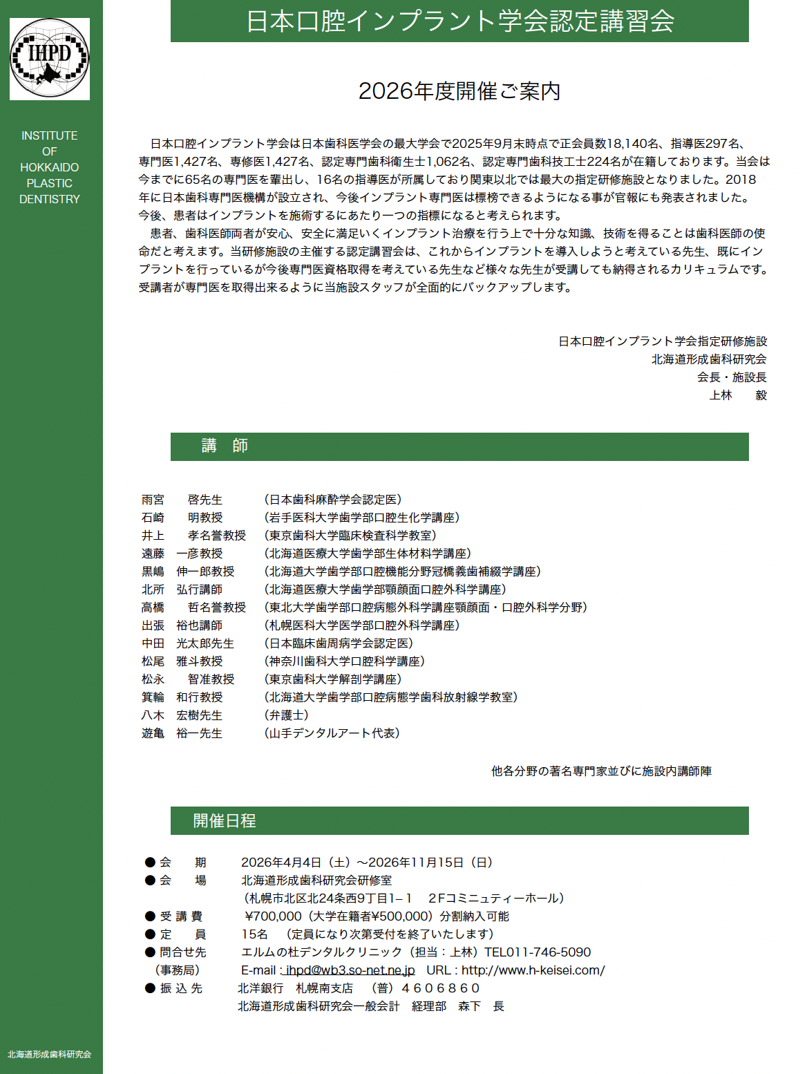 受講をご希望の方は、ihpd@wb3.so-net.ne.jpにご連絡をお願いいたします。